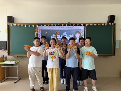 9月10日是一年一度的教師節(jié),今天同學(xué)們?cè)缭鐏?lái)到教室等待給老師們送上教師節(jié)的第一份祝?!欢涠湎蜿?yáng)花。這一朵朵漂亮的花朵是繪畫與手工課上老師帶領(lǐng)同學(xué)們做出來(lái)的??赐瑢W(xué)們那一張張認(rèn)真的臉龐,真惹人喜愛(ài);那一顆顆懂得感恩的心更上讓老師們感到欣慰。