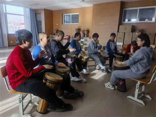 大家一起排練元旦聯(lián)歡會的非洲鼓節(jié)目